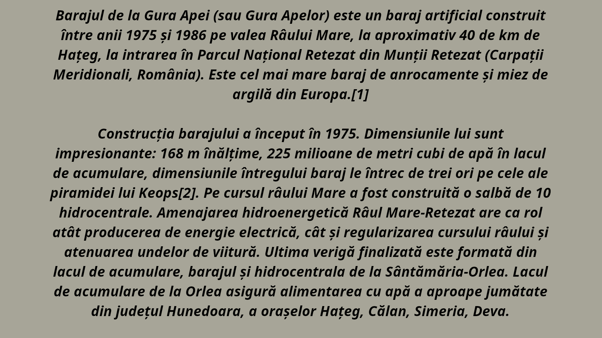 Lungime traseu 40 km , Durată traseu 4 h ,. Viteză medie 14.6 km/h . Interval altitudine 780 – 1215 m. 12 Gura Apelor GPX meteo Cele mai frumoase momente sunt lângă tine, ai nevoie de puţin timp să le priveşti.