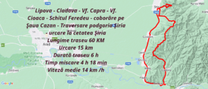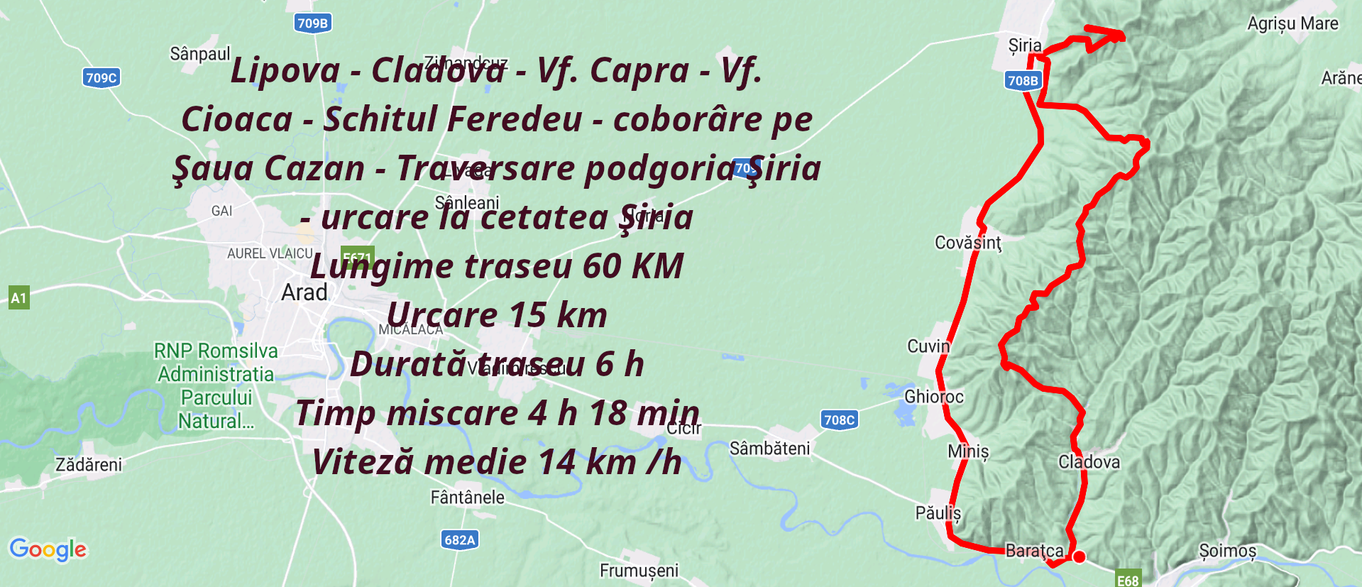 Galerie foto 22 Cetatea Şiria Galerie video Hartă traseu Home 2023 29 Cascadele Vanturatoarea Cociului 28 Grosii noi Obarsia 27 vf Turnu Piatra Craiului 26 Lacul Zanoaga – Zlata 25 Resita – vf Semenic 24 nucet–groapa ruginoasa 23 Bran – Drumul Carului 22 Cetatea Siria 21 Cheile Cugir barajul Oasa 20 Vf.Tarcu 19 Poiana Marului 18 Arsenie Boca gorun 17 TransFagarasan 16 TransBucegi Babele 15 Trans Alpina 14 Rosia Montana Cariera 13 Trans Luncani 12 Gura apelor 11 Valea Soimos Conop 10 Vf. Postavaru 09 Obarsia 08 Ususau Bata 07 Lacul Rosu Bicaz 06 Capruta Lupesti Grosi 05 Muntele Mic 04 Conop Baraj Taut 03 Turul Lipova 02 Ochiul de izvor 01 Valea mare – Cladova 2024 24 1 Cetatea Soimos 24 02 Monumentul Eroilor Paulis 24 03 Cheile Nerei 24 05 Cheile Valisoara Tutoriale Meteoblue.com Mapy.cz Traseu planificat Contact Menu Home 2023 29 Cascadele Vanturatoarea Cociului 28 Grosii noi Obarsia 27 vf Turnu Piatra Craiului 26 Lacul Zanoaga – Zlata 25 Resita – vf Semenic 24 nucet–groapa ruginoasa 23 Bran – Drumul Carului 22 Cetatea Siria 21 Cheile Cugir barajul Oasa 20 Vf.Tarcu 19 Poiana Marului 18 Arsenie Boca gorun 17 TransFagarasan 16 TransBucegi Babele 15 Trans Alpina 14 Rosia Montana Cariera 13 Trans Luncani 12 Gura apelor 11 Valea Soimos Conop 10 Vf. Postavaru 09 Obarsia 08 Ususau Bata 07 Lacul Rosu Bicaz 06 Capruta Lupesti Grosi 05 Muntele Mic 04 Conop Baraj Taut 03 Turul Lipova 02 Ochiul de izvor 01 Valea mare – Cladova 2024 24 1 Cetatea Soimos 24 02 Monumentul Eroilor Paulis 24 03 Cheile Nerei 24 05 Cheile Valisoara Tutoriale Meteoblue.com Mapy.cz Traseu planificat Contact Vremea cu MeteoBlue Lungime traseu 60 km , Durată traseu 6 h , Timp mişcare 4 h 18 min , Urcare 15 km . Viteză medie 14 km/h . Cele mai frumoase momente sunt lângă tine, ai nevoie de puţin timp să le priveşti.